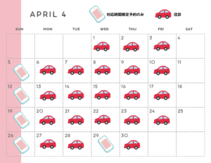 毎月15日頃に翌月の予定に更新します。